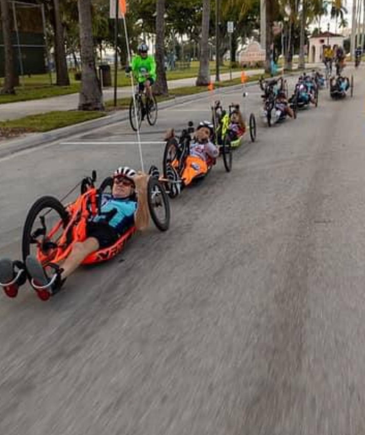 Handcycle Program—Our adaptive cycling program is all-inclusive. Our coaches provide one-on-one training for new athletes based on individual ability. With a focus on safety, all athletes are trained and educated in local bicycle traffic laws. The athletes learn how to safely operate hand cycles in a controlled environment and are then welcome to join our weekly rides on Monday & Friday from 7am-9am along the ocean front.