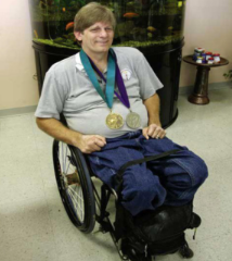 Bart began competing in wheelchair sports in 1979 a few years after sustaining a spinal cord injury from a swimming accident at age sixteen. He was classified 1-A medically and competed in the T-1 classification where he soon became an athlete to be reckoned with in track & field and road racing events. He eventually became involved int he quad division of tennis and the fast growing sport of quad rugby