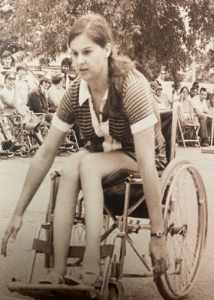 Darlene Quinlan, a T-12 paraplegic as the result of a childhood automobile accident, was one of Wheelchair Sports USA first great female multi-sport athletes. She began competing in 1967 in the sports of swimming; track & field; slalom and basketball. The following year at the 1968 Paralympic Games held in Tel Aviv, Israel, Darlene captured a gold medal in swimming and a bronze medal as a member of the first U.S. Women’s Basketball Team to compete internationally.