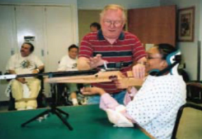 During his stint at the NRA, Dave developed the Rehabilitative Shooting Program, which applied a precision air rifle as a tool for physical therapists to utilize in the rehabilitation of their post-injury in-patients. The unit provided healthcare professionals with a unique method of improving their patients’ refined motor control skills, trunk balance, concentration proficiency, breath control, and self-esteem. The first unit was installed in September 1994 at the Lakeshore Foundation in Birmingham, Alabama. International recognition for the groundbreaking unit came in September 2000, when one was placed in service at the National Rehabilitation Hospital of Ireland in Dublin.