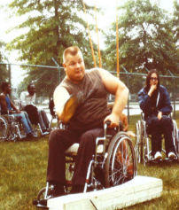 In 1959 at the age of 18 a week before he was to enter the U.S. Marines, an auto accident left him paralyzed from mid-chest down. His friend Jim Mathis got him to participate with the Cleveland Comets wheelchair basketball team as part of his physical therapy. From that experience came his involvement in field events: shot put, discus, javelin and later pentathlon. He set many records in local and state sports competitions.